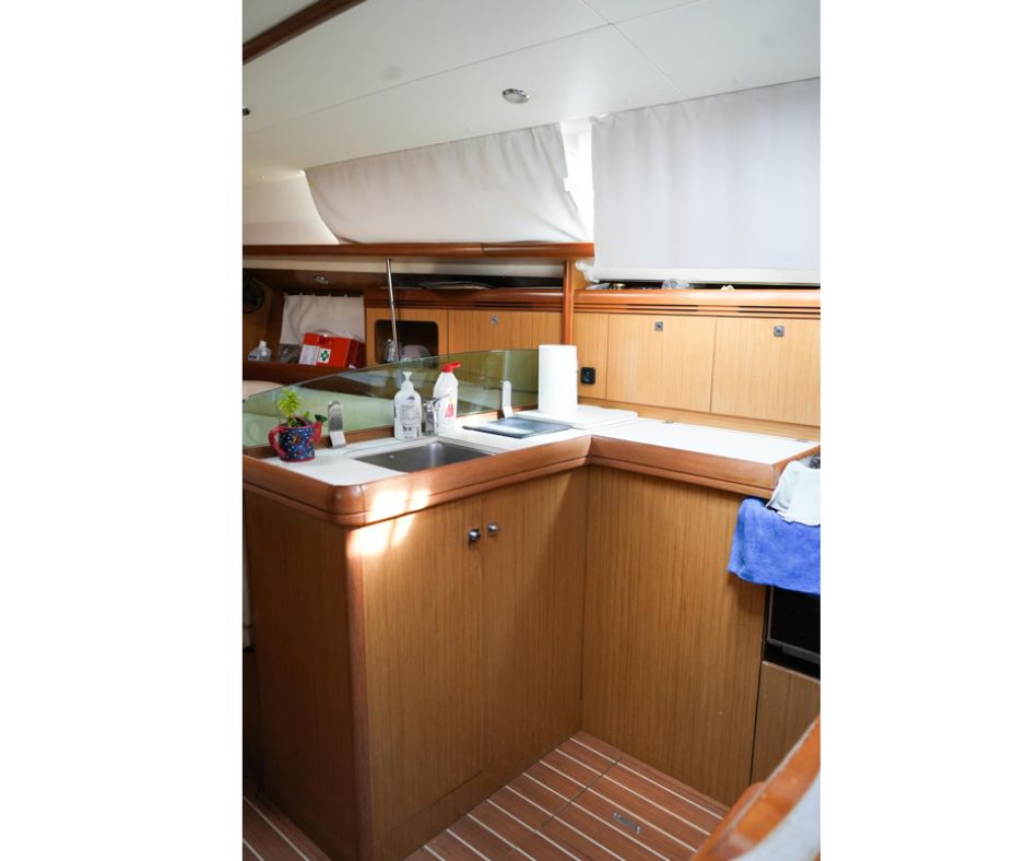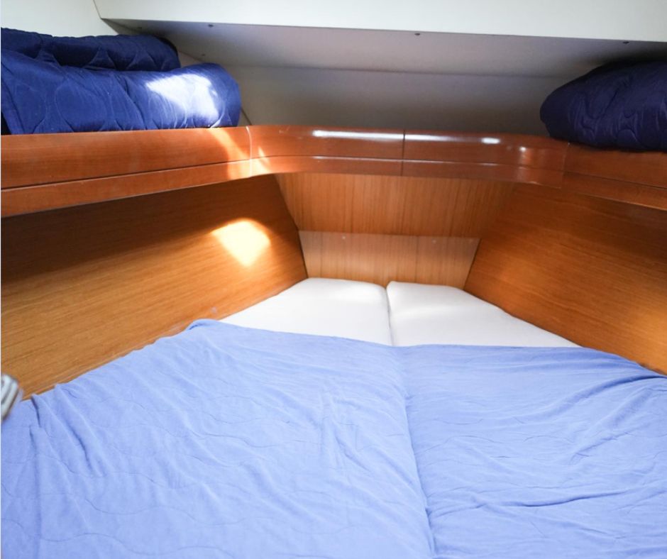 - Berths: 8 (6 in cabins + 2 in saloon)